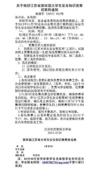 关于做好江苏省第四届大学生安全知识竞赛初赛的通知