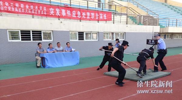 为进一步做好我校突发事件应急处置工作,深入开展“平安高校”创建工作,6月17日下午,学校安全保卫处和泉山公安分局巡防大队联合开展以“警校联手、共铸精英”为主题的突发事件应急处置演练。