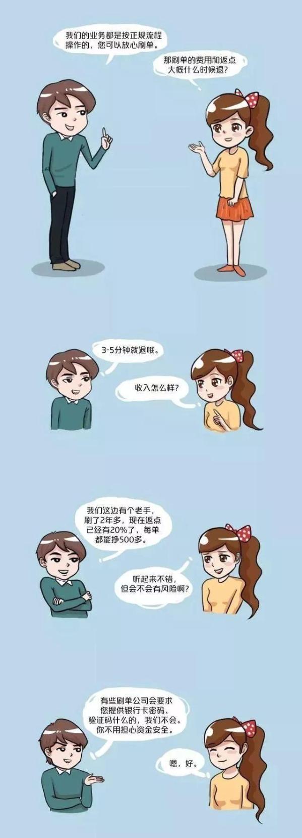 不法分子一般通过互联网通讯软件向持卡人宣传“刷单业务”,许以高额收益。同时,强调安全无风险,不索要任何密码、验证信息等,打消持卡人被骗的疑虑。