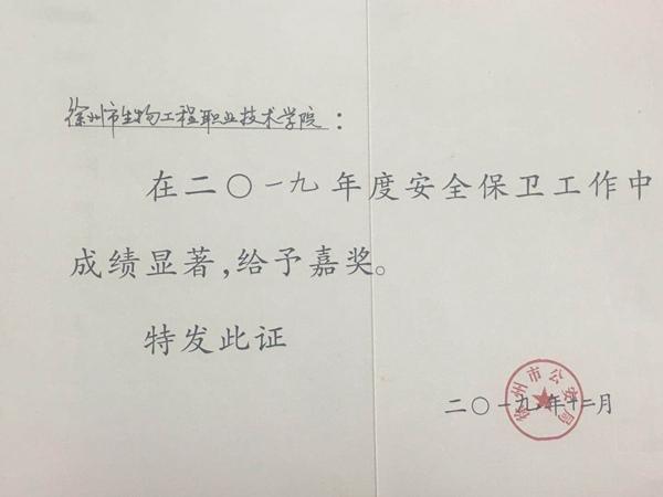 2019年,在学院党政的正确领导下,我院全体教职工紧紧围绕着创建“平安校园”这一中心任务,坚持预防为主、防治结合的工作方针,不断健全内部安全防范制度,完善安全防范措施,忠于职守,爱岗敬业,扎实工作,在保障师生生命财产安全、维护校园安全稳定、消除安全隐患等方面做了大量工作,全年未出现一起安全事故和不稳定事件。