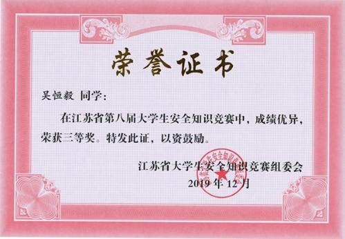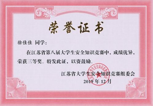 我院喜获第八届江苏省大学生安全知识竞赛三等奖