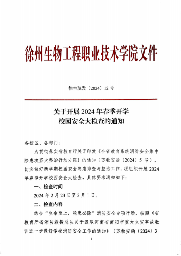关于开展2024年春季开学校园安全大检查的通知